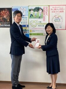 沖縄県本部では、沖縄県子どもの未来県民会議の基本理念に賛同するとともに、当協会の事業の一環である【社会的弱者の支援又は地域社会の健全な発展に資する啓発活動、支援活動その他の社会貢献活動】に一致するもとの考え、毎年寄付をさせて頂いております。